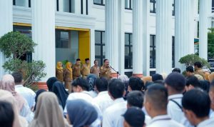Bengkulu, nuansabengkulu.com – Wakil Gubernur Bengkulu, Mian, memimpin apel bersama Aparatur Sipil Negara (ASN) di lingkungan Dinas Pekerjaan Umum dan Penataan Ruang (PUPR) Provinsi Bengkulu, Senin (13/10). Apel tersebut turut dihadiri Asisten II Setda Provinsi Bengkulu, R.A. Denny, dan Kepala Dinas PUPR Provinsi Bengkulu, Tejo Suroso.
