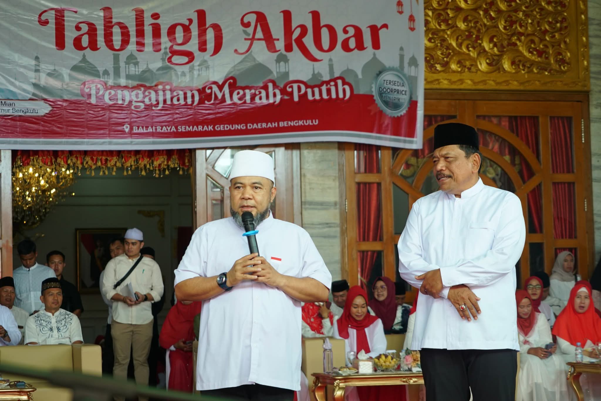Bengkulu – Suasana penuh semangat dan kekhidmatan menyelimuti Balai Raya Semarak Bengkulu, Ahad (19/10/2025), saat Gubernur Bengkulu Helmi Hasan menghadiri Tabligh Akbar Merah Putih yang diikuti ribuan jamaah dari berbagai daerah di Provinsi Bengkulu.