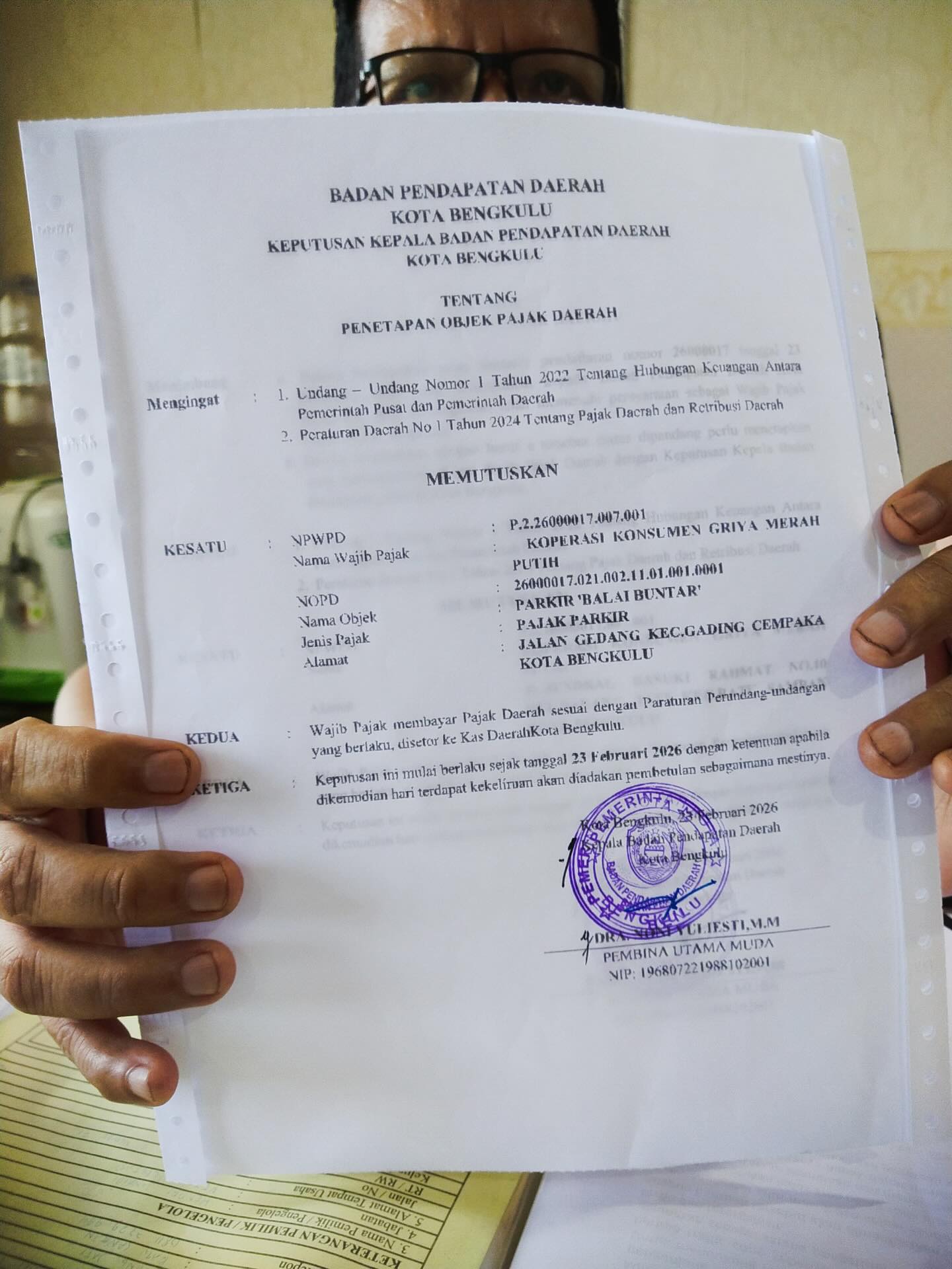 Setelah pengelolaan diserahkan, koperasi tersebut mengurus NPWPD yang diterbitkan Pemerintah Kota Bengkulu. Selanjutnya, Badan Pendapatan Daerah (Bapenda) Kota Bengkulu menetapkan tarif parkir sebesar Rp2.000 untuk kendaraan roda dua dan Rp3.000 untuk kendaraan roda empat.