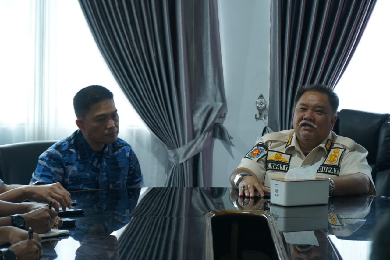 Bupati H. Rifai Tajudin bersama Wakil Bupati Yevri Sudianto menerima audiensi Komandan Lanud Sri Mulyono Herlambang, Kolonel Pnb Zulkifli Arif Purba, di ruang kerja Bupati, Jum’at (27/02/26).