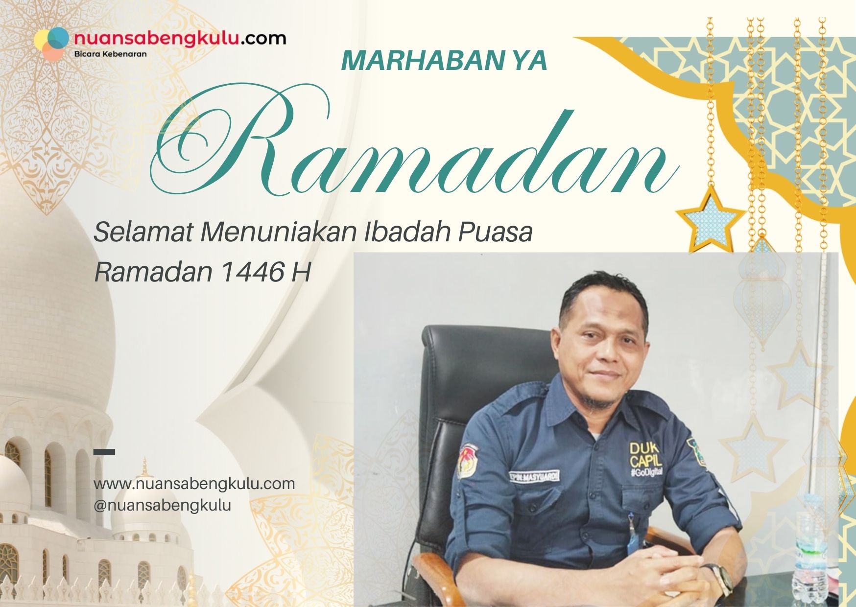Mukomuko, nuansabengkulu.com – pemerintah kabupaten Mukomuko Dinas Kependudukan dan Pencatatan Sipil mengucapkan selamat Menunaikan ibadah Puasa di bulan suci Ramadhan ini.