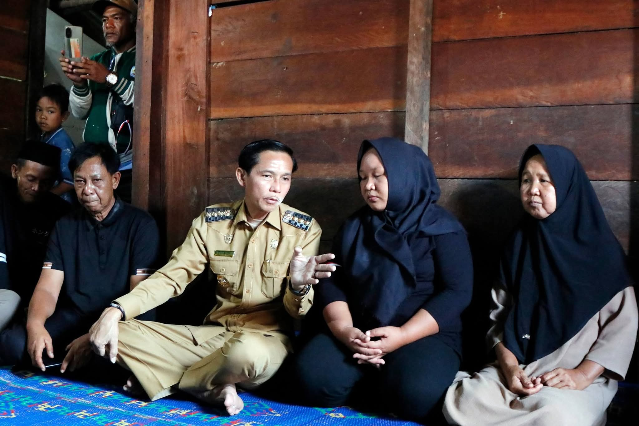 Bupati Kaur, Gusril Pausi, S.Sos, MAP yang didamping Sekretaris Daerah Dr. Nasrur Rahman, S.Hut, M.Si mengunjungi LC anak di bawah umur yang menjadi korban tindak asusila di kediaman keluarganya di salah satu Desa, Kecamatan Muara Sahung, Senin (20/4/2026).